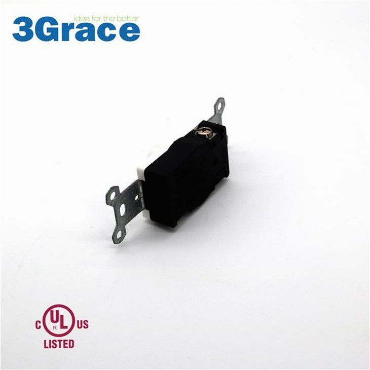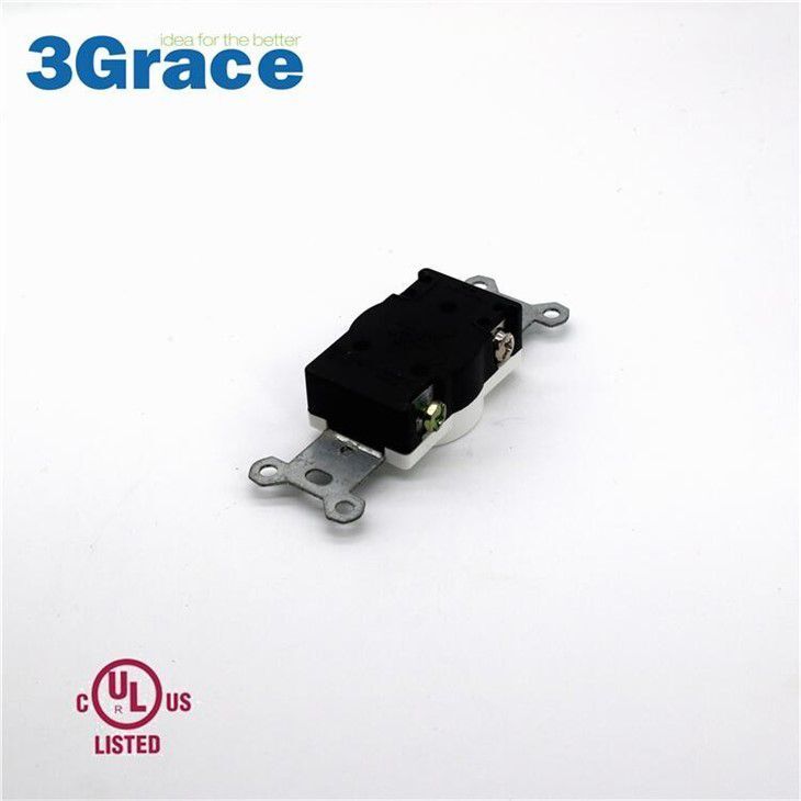 Shallow body design fits standard junction boxes. Side terminal wiring (copper only). Break-off plaster ears. Grounding screw